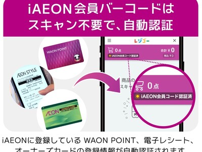 「レジゴー」がミニアプリ化!イオンのトータルアプリ「iAEON」からレジゴーを利用すると、オーナーズカードや電子レシート機能が自動連携
