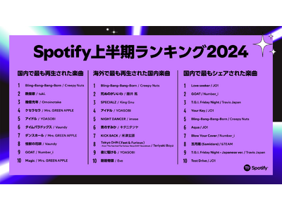 Spotifyが2024年上半期を賑わせた音楽シーンを振り返る日本のランキングを発表