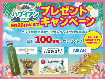 【食べ放題を満喫してプレゼントを当てよう!!】‟ニラックスブッフェ”で開催中の『行ったつもりでハワイアンフェア』にてハワイ州観光局のオリジナルグッズなどが当たるプレゼントキャンペーンを開催!