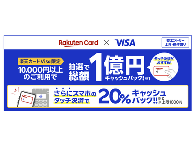 楽天カード、「楽天カード Visa」限定で総額1億円が抽選でキャッシュバックされるキャンペーンを開催