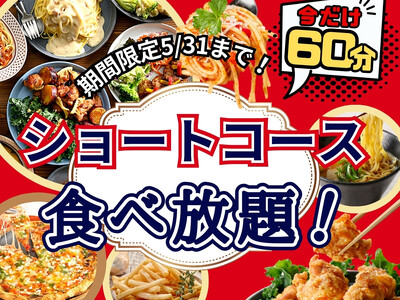 【大好評企画!!充実の60分間食べ放題!!】和洋中のお料理が食べ放題の“ニラックスブッフェ”にて大人気の『45分間』エキスプレスコースをお値段そのまま5/31迄『60分間』に延長!お得に食べ放題を満喫!