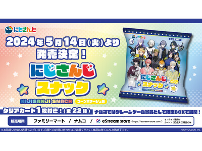 人気VTuberグループ「にじさんじ」より、全22種類のオリジナルクリアカードが付いた「にじさんじスナック コーンポタージュ味」の発売が決定!