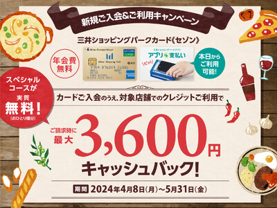 【ご請求時に最大3,600円キャッシュバック!】バラエティー豊かな食べ放題『ニラックスブッフェ』5店舗にて三井ショッピングパークカード《セゾン》の新規ご入会&ご利用キャンペーンを開催!