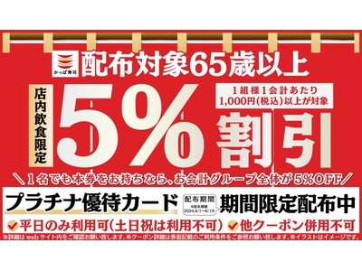かっぱ寿司、平日・店内飲食限定65歳以上のお客様が対象 好評につき、お得な『プラチナ優待カード』期間限定配布第2弾