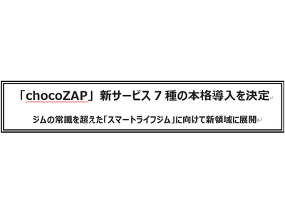 「chocoZAP」 新サービス7種の本格導入を決定ジムの常識を超えた「スマートライフジム」に向けて新領域に展開
