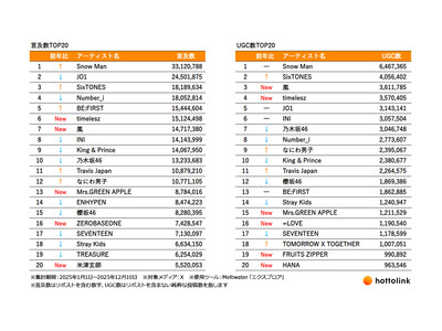 Snow Man、JO1、SixTONES、嵐など… ホットリンク、2025年にXで話題になったアーティストを調査