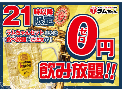 〈居酒屋×ジンギスカン専門店〉大衆ジンギスカン酒場ラムちゃん 新企画「0円ハイボール飲み放題」2024年3月15日(金)スタート!!