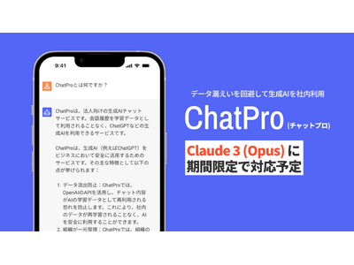 法人向けAIサービス ChatPro が Claude 3(クロード)に対応予定。Anthropic社の最新AIをセキュアな環境で社内利用可能