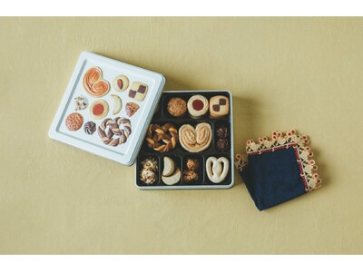 ユーハイム×近沢レース店 老舗同士のコラボレーション!ビスケット缶「テーゲベック」&ビスケット柄レースタオルハンカチのセット3月4日(月)~発売