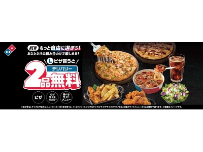 ドミノ・ピザ、伝説のキャンペーン「1枚買うと2枚無料!」が「2枚」から「2品」に進化! 2月19日から、いつでも「1枚買うと2品無料!」