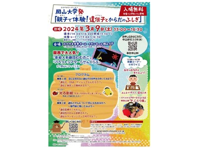 【岡山大学】岡山大学発 親子で体験!遺伝子とからだのふしぎ〔3/9,土 イオンモール岡山5階〕