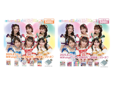 「超ときめき(ハート)宣伝部」デビュー10周年記念!歴代CDジャケットをデザインしたピンズカプセルトイvol.1/vol.2が、本日2025年8月26日(火)より順次発売開始!
