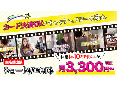【新商品】創業1周年「ショート動画屋さん」が1店舗1本月3,300円~実店舗動画制作サービスをリリース。Google mapやTikTok等SNS広告戦略の新時代を牽引し、店舗集客に新たな選択肢を提供