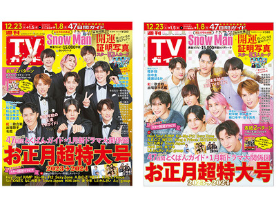 「週刊TVガイドお正月超特大号」表紙はSnow Man――きりっとタキシード姿&もちもち重なったニットスタイルの2パターン表紙! 開運証明写真企画も