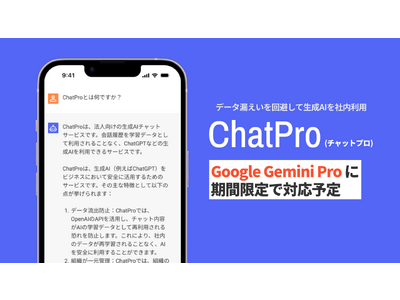 法人向けAIサービス ChatPro が Gemini(ジェミニ)に対応予定。Google社の最新AIをセキュアな環境で社内利用可能