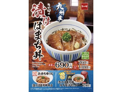 【なか卯】脂のりが良い九州産はまちでごはんがすすむ!期間限定でなか卯に「漬けはまち丼」が新登場!ゆず香る出汁でお茶漬け風に楽しめるセットも販売