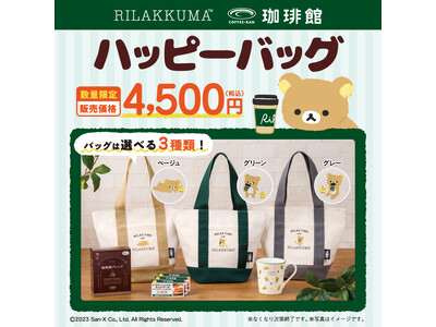 『珈琲館』が「リラックマ」と初コラボ!数量限定オリジナルハッピーバッグを12月15日(金)より発売開始!トートバッグやマグカップなど4つのアイテムがセットに
