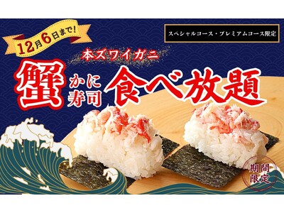 【食欲の秋は“蟹寿司”食べ放題で決まり!!】12/6迄の特別企画!『ザ ブッフェ ニューマーケット』など10店舗のスペシャルコース以上に、本ズワイガニをふんだんに乗せた『蟹寿司』が新登場!