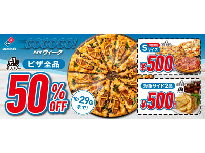 【ドミノ・ピザ1000店舗達成記念第2弾】「GoGoGo!ウィーク」10月23日~29日開催お持ち帰りSピザ3種各500円!デリバリーピザ全品50%OFF!お好きなサイドメニュー2品500円!