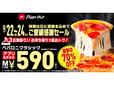【3日間限定】ピザハットのペパロニクラシック(Mサイズ)が590円で食べられる「ご愛顧感謝セール」を開催します!