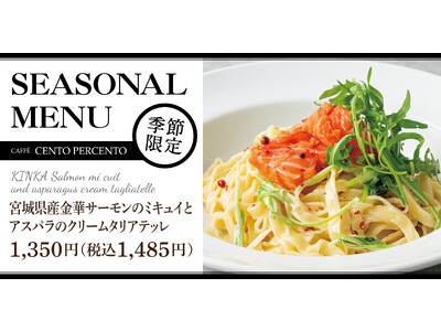 【宮城県産】低温調理でほどける柔らかさ「宮城県産金華サーモンのミキュイとアスパラのクリームタリアテッレ」がチェントペルチェントに新登場
