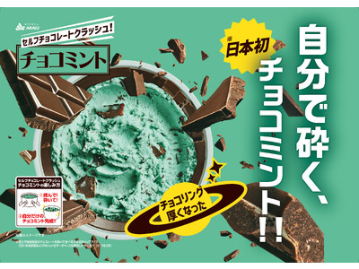 日本初※のチョコミントがパワーアップして帰ってきた!チョコリング(側面チョコ)15%増量!自分好みにチョコリングを砕いて楽しむカップアイス!「セルフチョコレートクラッシュ!チョコミント」