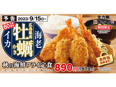 【60万食限定】3種の海鮮を味わう「秋の海鮮フライ定食」とんかつ専門店かつやに新登場