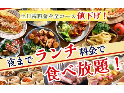 【ホリデーはお得に食べ放題を満喫!!】飲茶やステーキが楽しめる“ニラックスブッフェ”17店舗の土日祝料金を9/2より全コース『110円』値下げ!!更に『夜までランチ料金』で充実の食べ放題をご堪能ください。