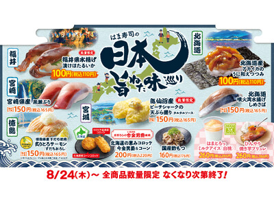 【はま寿司】北海道、東北、九州などから、日本の旨ねたが勢ぞろい!「はま寿司の日本旨ねた味巡り」を期間限定で開催!