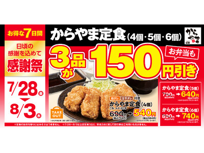 【お得な7日間】からあげ定食専門店「からやま」で人気の3品がお弁当も150円引き!