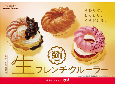 【ミスタードーナツ】8月2日(水)からフレンチクルーラー50周年記念商品『生フレンチクルーラー』期間限定発売