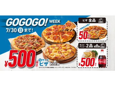 ドミノ・ピザ、物価高騰をぶっ飛ばし、夏休みを楽しくする「GoGoGo!ウィーク」7月21日~30日まで開催 お持ち帰りSピザ3種各500円!デリバリーピザ全品50%OFF!