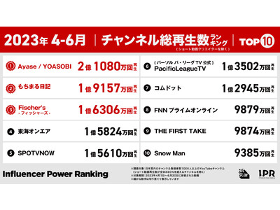 【インフルエンサーパワーランキング】YOASOBI『アイドル』で三冠。MV・アニメOPに再生が集中、新規チャンネルでは坂道シリーズが奮闘【2023年4-6月】