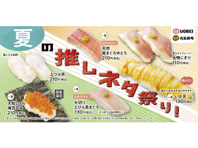 南まぐろ中とろや人気の大粒いくらなど魚べいがこの夏推したい”推しネタ”をお値打ち価格でご提供!『夏の推しネタ祭り!』
