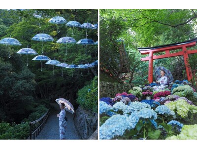 紫陽花の花手水が話題の京都柳谷観音楊谷寺とフェリシモが「紫陽花の傘」のアンブレラスカイを共催(6月6日~6月30日まで)