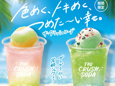 白桃&マスカットが新登場!ザクザク氷に炭酸シュワ~!、冷た~い幸せを召し上がれ!「ザ・クラッシュソーダ」
