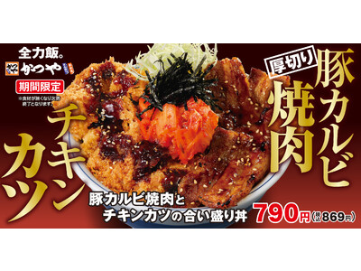 【梅雨こそ全力飯。】焼肉は厚切り!「豚カルビ焼肉とチキンカツの合い盛り」とんかつ専門店「かつや」に新登場