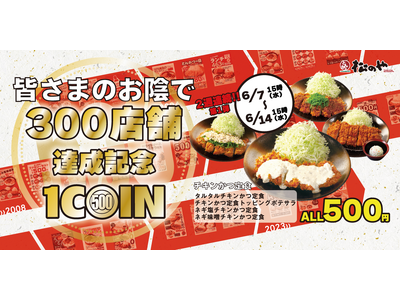 【松のや】松のや300店舗達成記念2週連続 ワンコインセール 開催!「チキンかつ定食」「ロースかつ定食」味わい豊富なチキンかつシリーズと、王道ロースかつがワンコインに