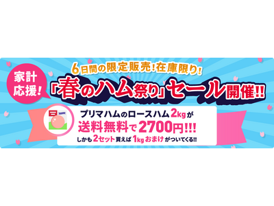 プリマハムの「ロースハム2kg」が送料無料で2700円。さらに2セット買えば「1kg」がおまけでついてくる。「春のハム祭り」開催!