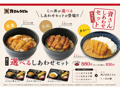 北九州のソウルフード「資さんうどん」の大人気メニュー「資さんしあわせセット」がバリューアップ!4月5日(水)~「ミニ丼」が3種類からチョイスできる「選べるしあわせセット」が期間限定で登場!