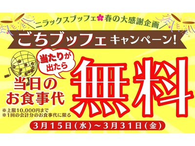 【お食事代が無料に?!】ニラックスブッフェ46店舗にて最大で10,000円のお食事代が『無料』になる!『ごちブッフェ』を開催いたします!