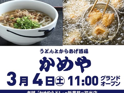 創業50年 愛媛の老舗『かめやうどん』の新業態が2023年3月4日(土)にオープン!!【うどんと唐揚げ酒場 かめや】【愛媛県・今治市】