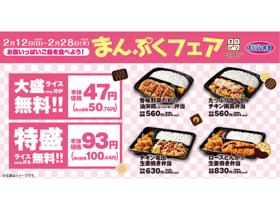 【お腹いっぱいご飯を食べよう!】ライス大盛・特盛分が無料になる「まんぷくフェア」を開催!