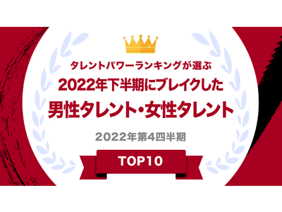『タレントパワーランキング』が選ぶ2022年下半期にブレイクした男性・女性タレントを発表!!WEBサイト『タレントパワーランキング』ランキング企画第195弾!!