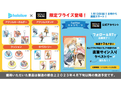 女性VTuberグループ「ホロライブ」、「MOLLY.ONLINE」限定コラボ第12弾として「白上フブキ」「不知火フレア」「角巻わため」のコラボグッズを1月13日(金)18時展開開始!