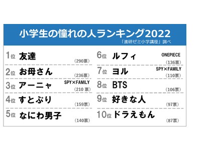 <「進研ゼミ小学講座」 小学生13,000人に聞きました!2022年総決算ランキング>憧れの人ベスト3は「友達」「お母さん」「アーニャ」
