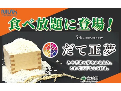 【“だて正夢”が食べ放題!】ニラックスブッフェ10店舗にて、次世代のプレミアムブランド米の『だて正夢』が登場!もちもち食感と噛むほどに溢れる甘みと旨みを思う存分ご堪能ください!
