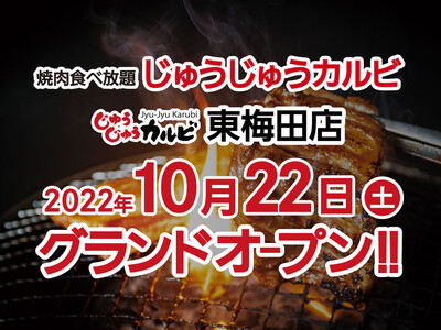 「“焼肉食べ放題“じゅうじゅうカルビ東梅田店」2022年10月22日(土)グランドオープン!