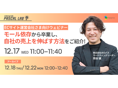 【無料ウェビナー】PASCAL LAB|ECサイト運営会社さま向けウェビナー モール依存から卒業し、自社ECの売上を伸ばす方法をご紹介!