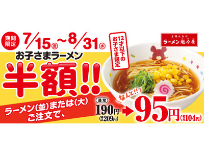<夏休み特別企画 >「お子さまラーメン」が期間限定でなんと【半額】に!
